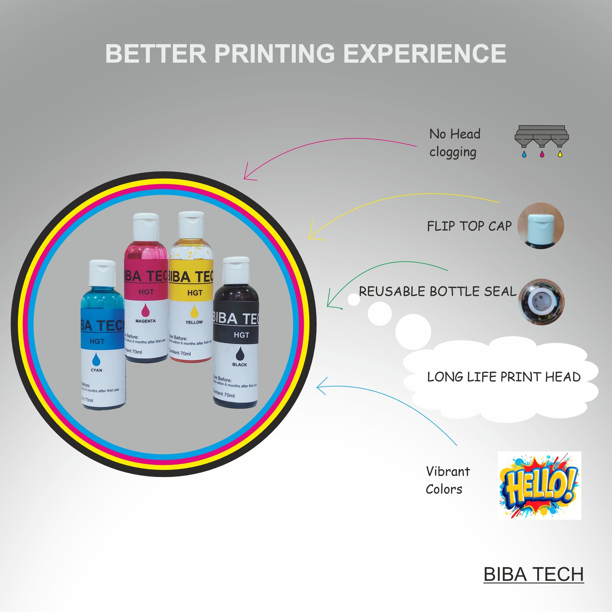 biba tech HP 5810, 310, 315, 319, 410, 415, 419, GT5810, GT5820, GT5811, GT5821 Black + Tri Color Combo Pack Ink Bottle